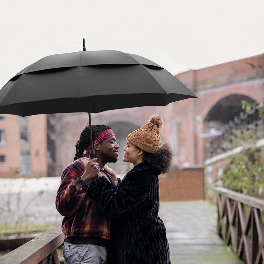 60-inch wide dome, double-layer breathable and waterproof umbrella, reinforced fiberglass frame, easily cope with heavy rain and strong winds