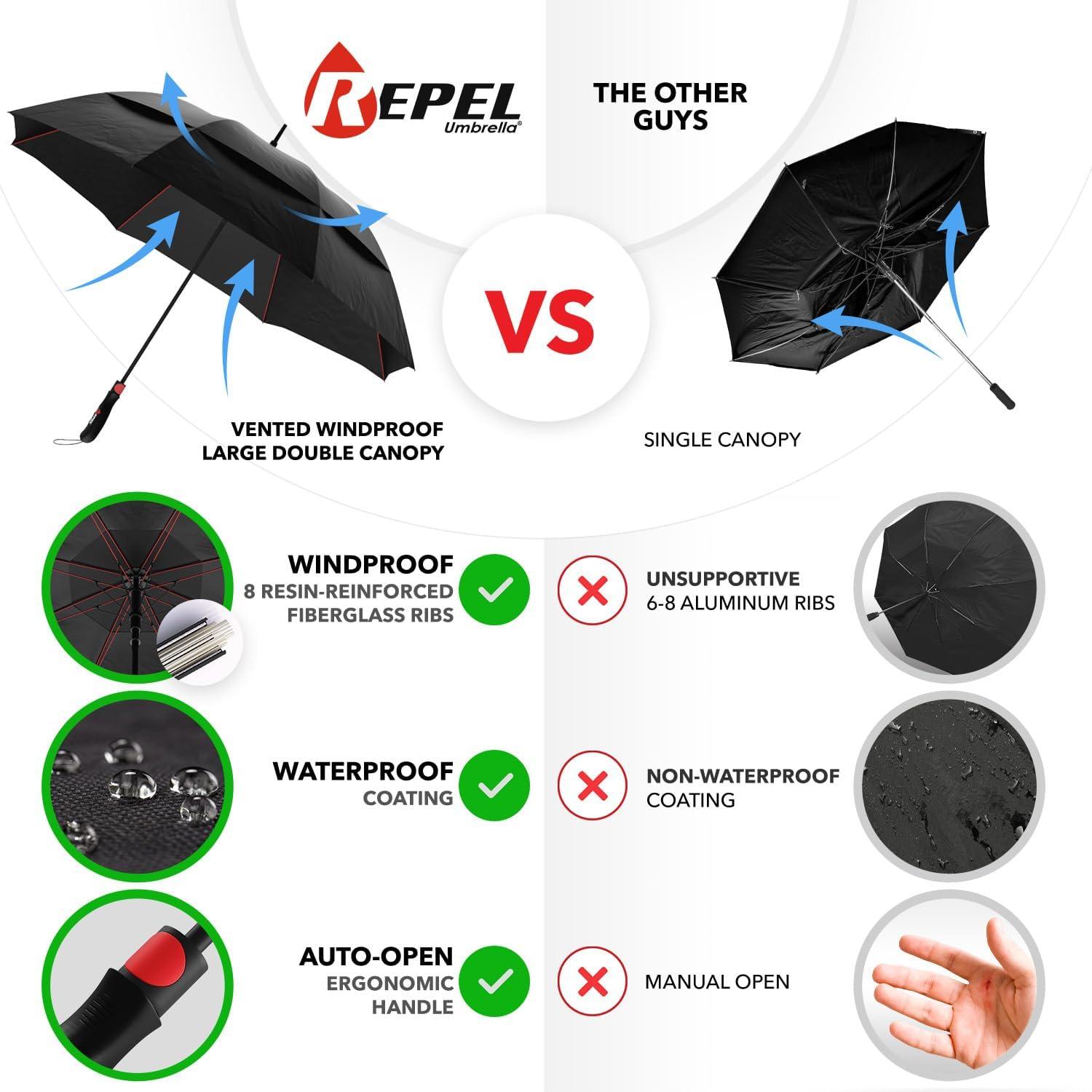 Save up to 40% on Repel Umbrella Extra Large Windproof Golf Umbrella – Covers 2 People – 60" Wide Vented Double Canopy with Reinforced Fiberglass Ribs, Waterproof Coated Canopy(Black) styles during our end-of-season sale.