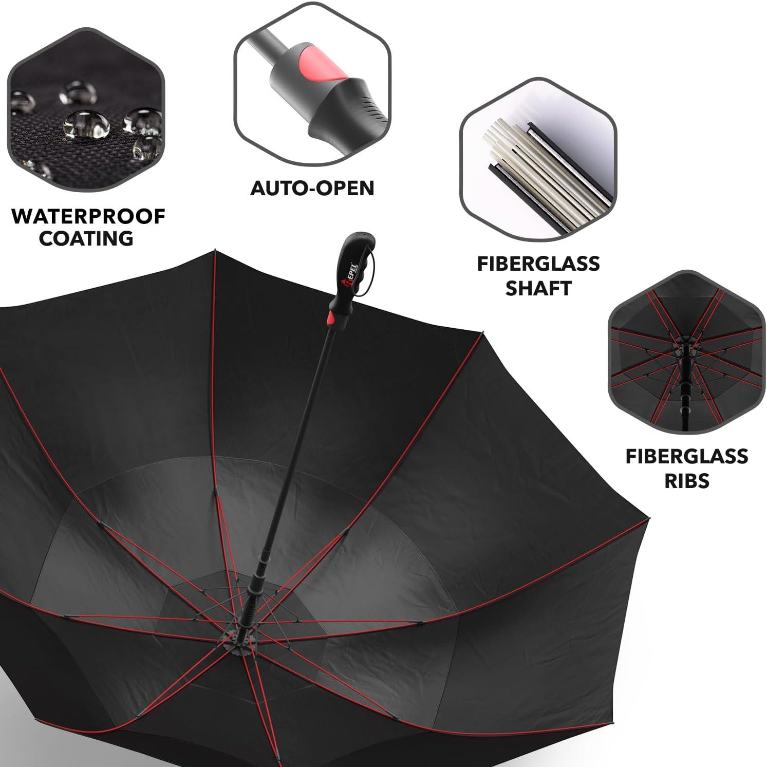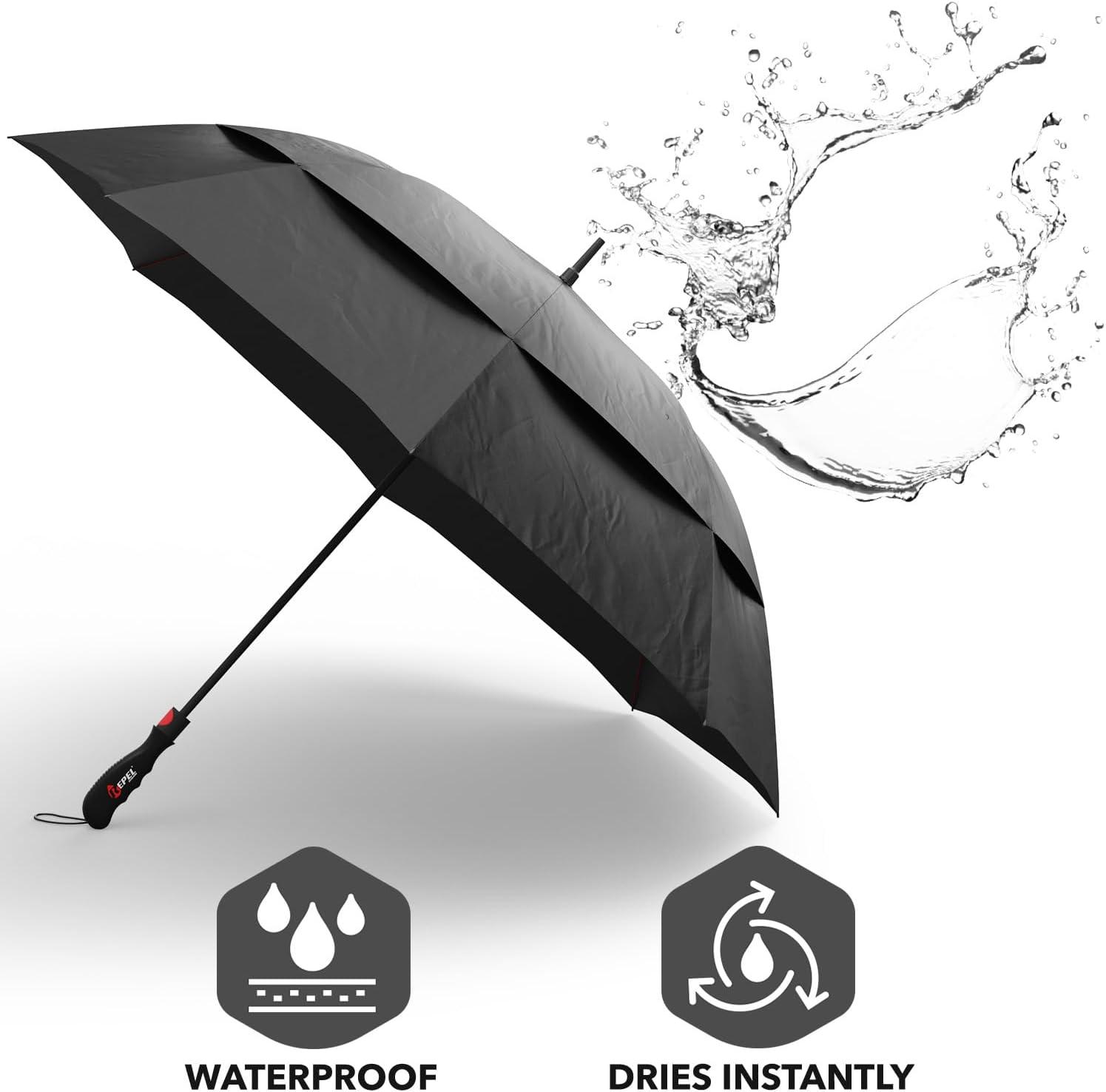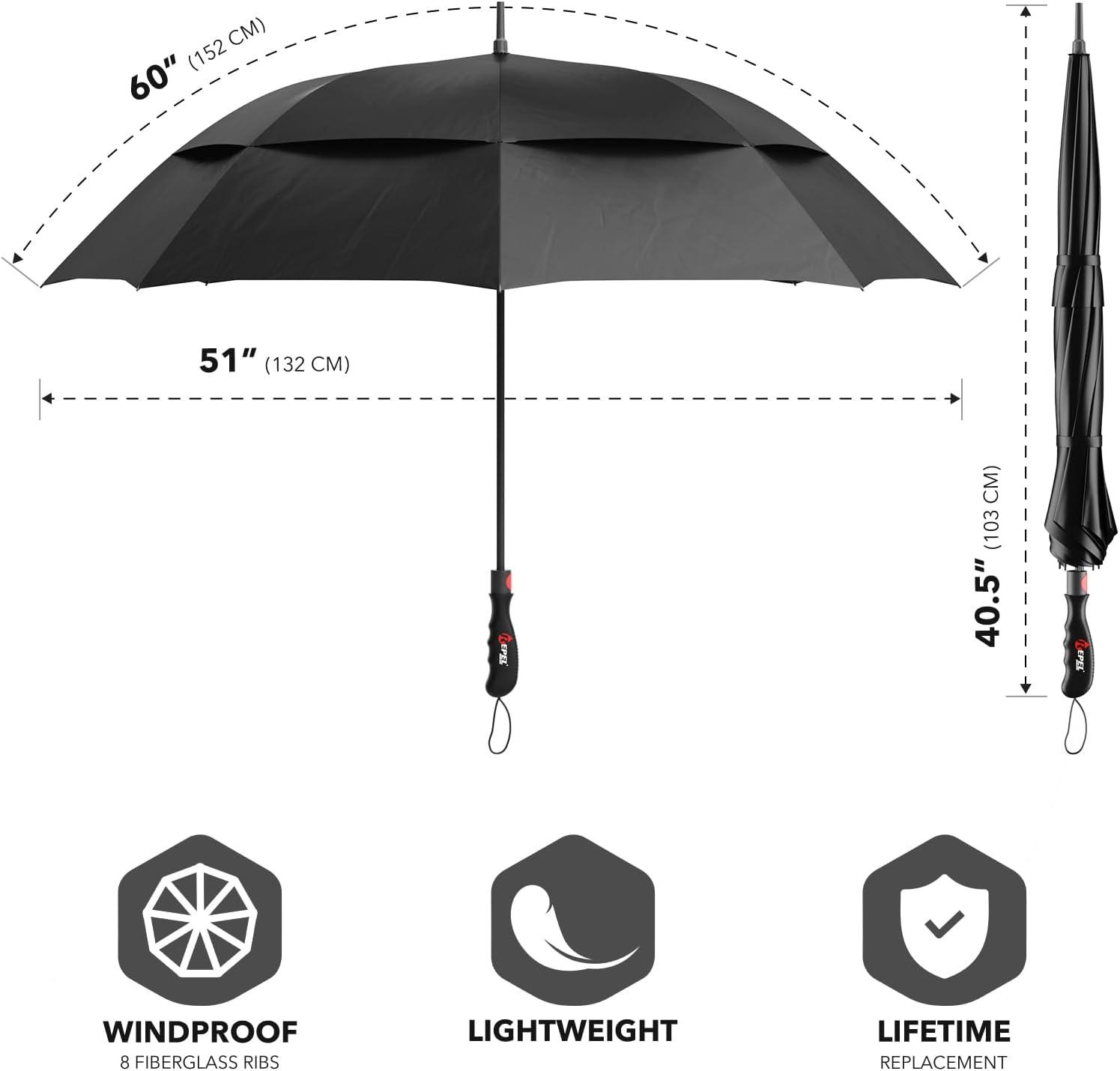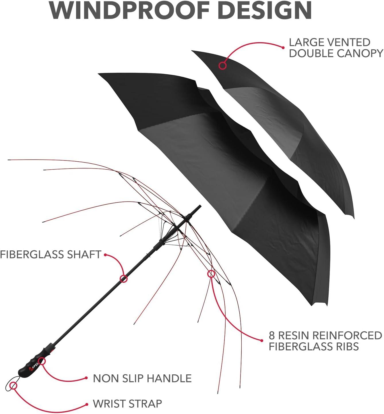 Repel Umbrella Extra Large Windproof Golf Umbrella – Covers 2 People – 60″ Wide Vented Double Canopy with Reinforced Fiberglass Ribs, Waterproof Coated Canopy(Black)