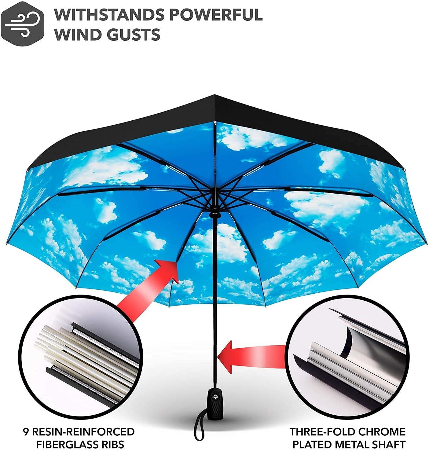 imageREPEL Windproof Travel Umbrella  Compact ampamp Withstands Winds up to 85MPH  Strongest Premium Auto Folding Umbrella for Rain and Sun  Durable Light ampamp Portable for Women ampamp Men  Fits Backpack ampamp CarsBlue Sky