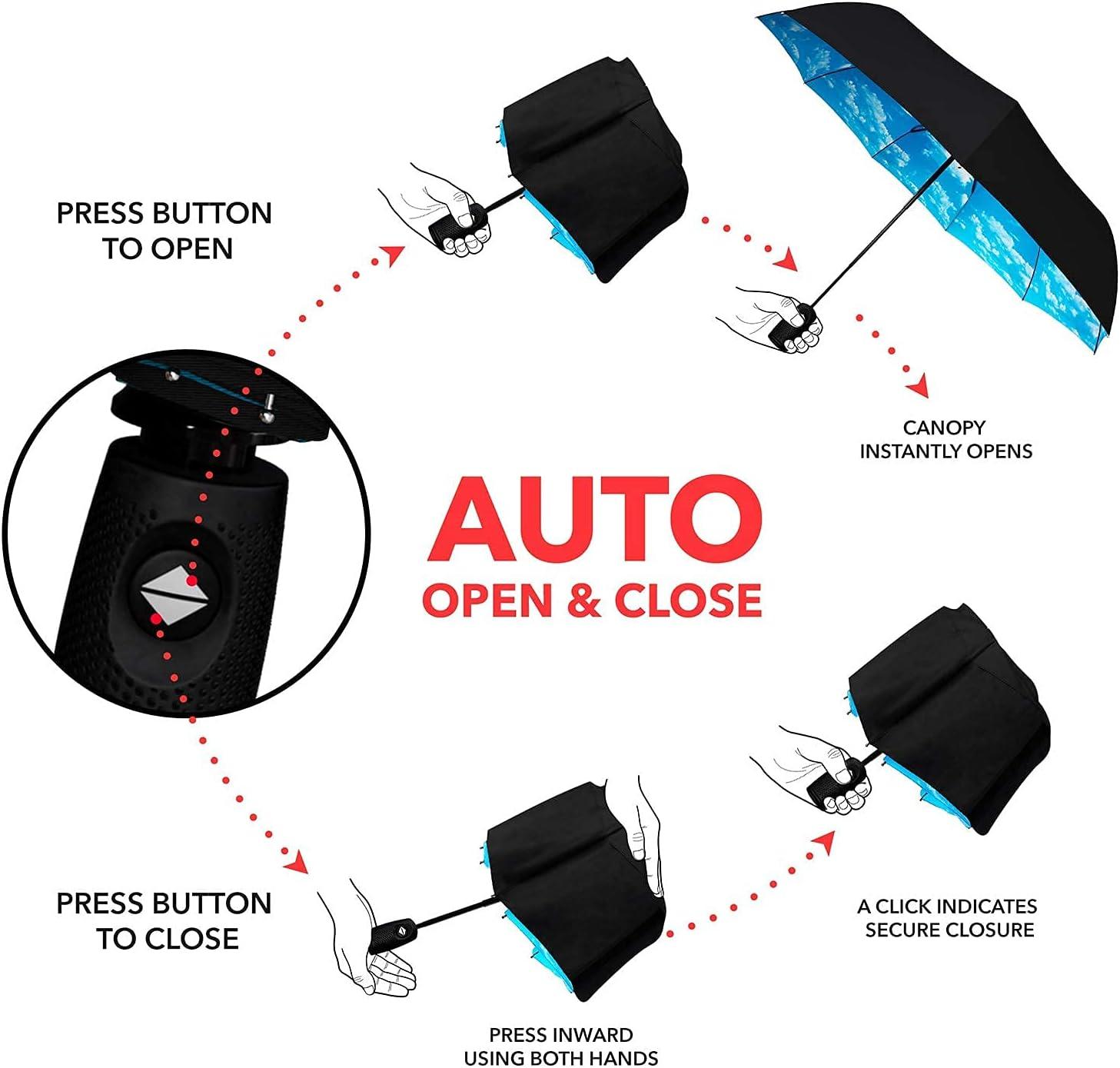 REPEL Windproof Travel Umbrella – Compact & Withstands Winds up to 85MPH , Strongest Premium Auto Folding Umbrella for Rain and Sun – Durable, Light & Portable for Women & Men , Fits Backpack & Cars(Blue Sky)