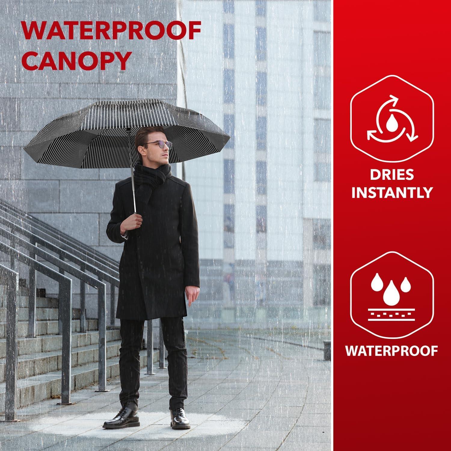 REPEL Windproof Travel Umbrella – Compact & Withstands Winds up to 85MPH , Strongest Premium Auto Folding Umbrella for Rain and Sun – Durable, Light & Portable for Women & Men , Fits Backpack & Cars(Pinstripe)