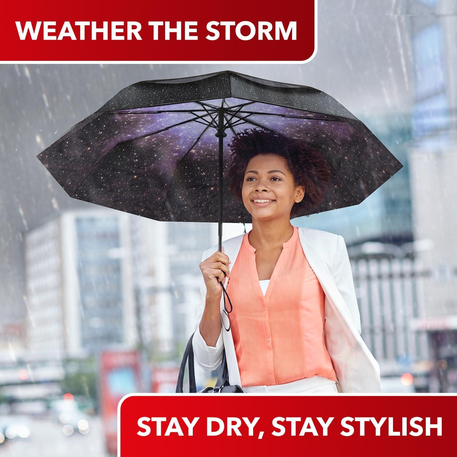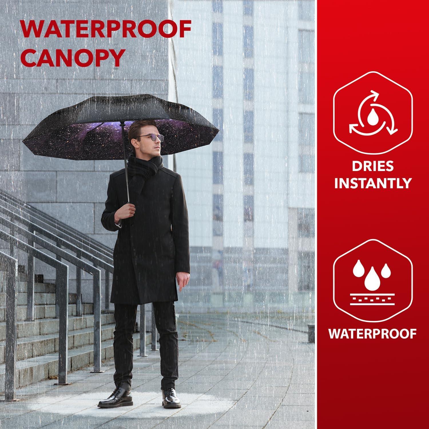 imageREPEL Windproof Travel Umbrella  Compact ampamp Withstands Winds up to 85MPH  Strongest Premium Auto Folding Umbrella for Rain and Sun  Durable Light ampamp Portable for Women ampamp Men  Fits Backpack ampamp CarsStarry Night