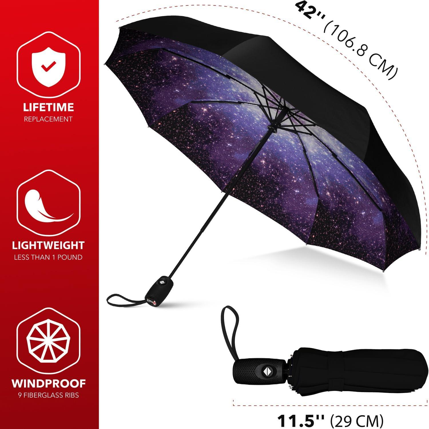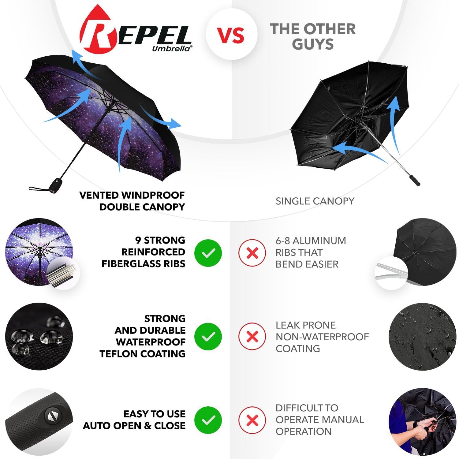 REPEL Windproof Travel Umbrella - Compact & Withstands Winds up to 85MPH , Strongest Premium Auto Folding Umbrella for Rain and Sun - Durable, Light & Portable for Women & Men , Fits Backpack & Cars(Starry Night)